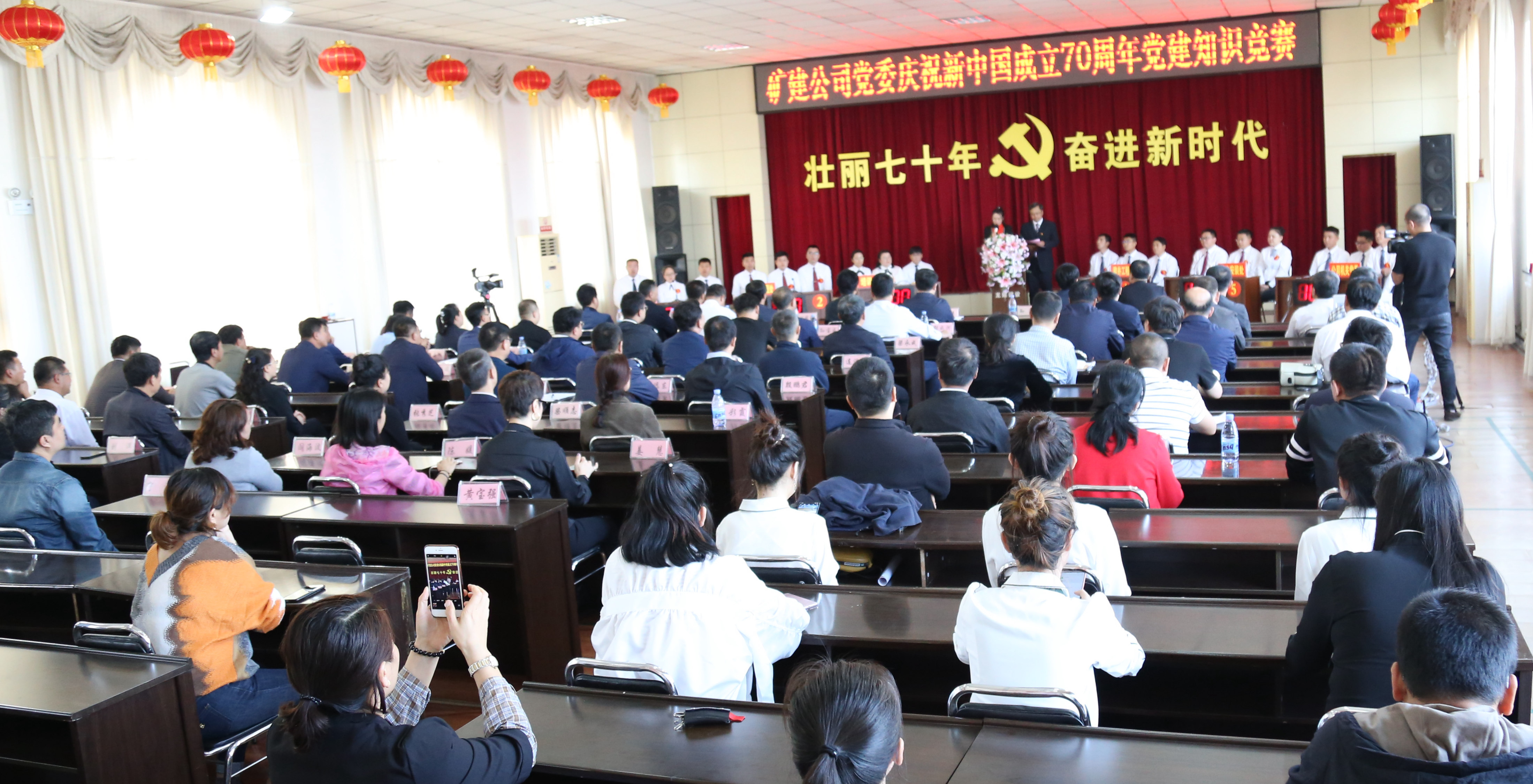 这是9月27日下昼,在喜迎新中国建设70周年之际,为讴歌伟大祖国取得的绚烂成绩,引发全公司干部职工的爱国热情,展现矿建人刷新立异、勇于继续的时代精神,矿山建设公司举行的庆祝新中国建设70周年主题党建知识竞赛的答题现场。