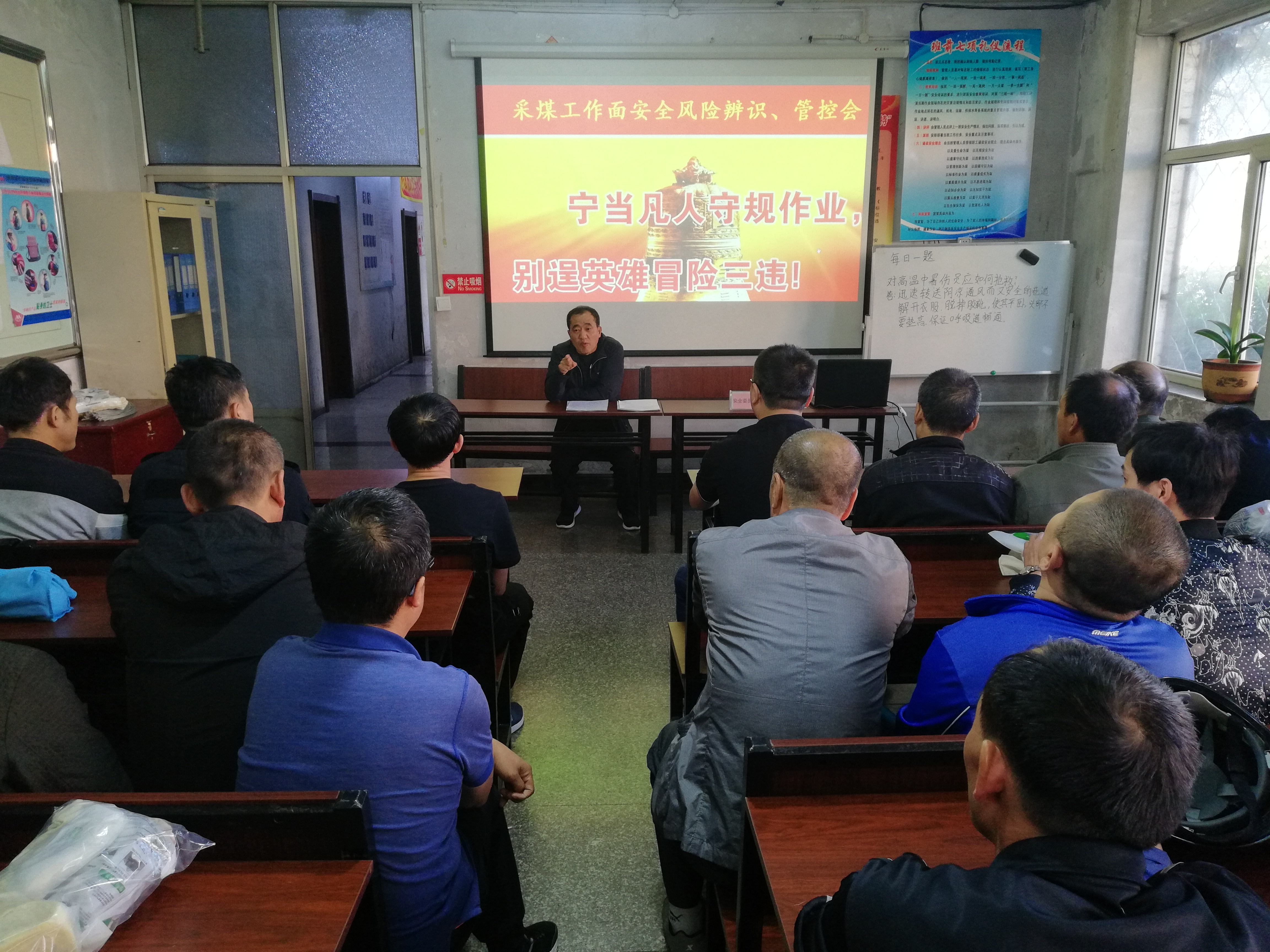 新陆矿扎实深入开展“清静警示教育月”运动, 连日来,这个矿副总以上向导深入到采掘区队职工班前上清静大课,解说清静知识,提高清静生产提防意识和操作手艺,确保实现清静生产。图为清静大课现场。王满昌 摄