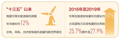 习近平总书记指出,生长清洁能源,是改善能源结构、包管能源清静、推进生态文明建设的主要使命。“十三五”以来,我国加速调解能源结构,镌汰煤炭消耗、稳固油气供应、大幅增添清洁能源比重。2019年,我国非化石能源占一次能源消耗比重达15.3%,提前一年完成“十三五”妄想目的使命。