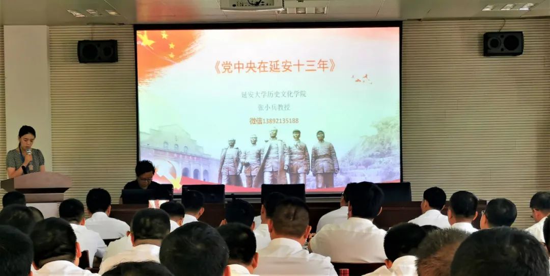 在党史教育专题教学中,由陕西省政协委员、延安市政协常委、民盟延安市副主委,延安大学第一任历史学院院长、教授、硕士生导师,中国近现代史重点学科带动人张小兵教授为全体学员上了《党中央在延安十三年》的专题教学课。
