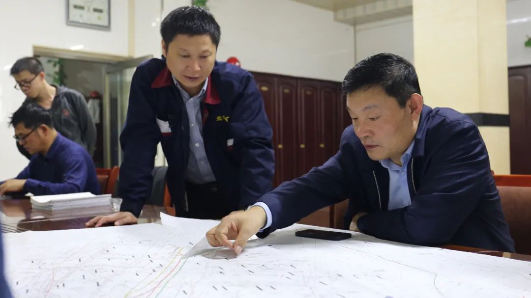 升井后,王佳喜一行比照事情图纸与该矿班子成员配合研究了工程支配,并现场踏查了矿建公司37处认真施工的东部风井冻结钻孔施工情形 。