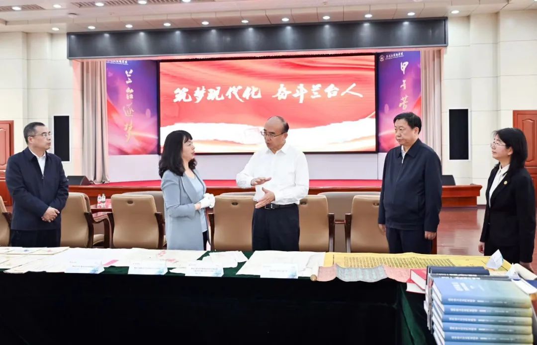 许勤在省档案馆报告厅,观察特藏档案