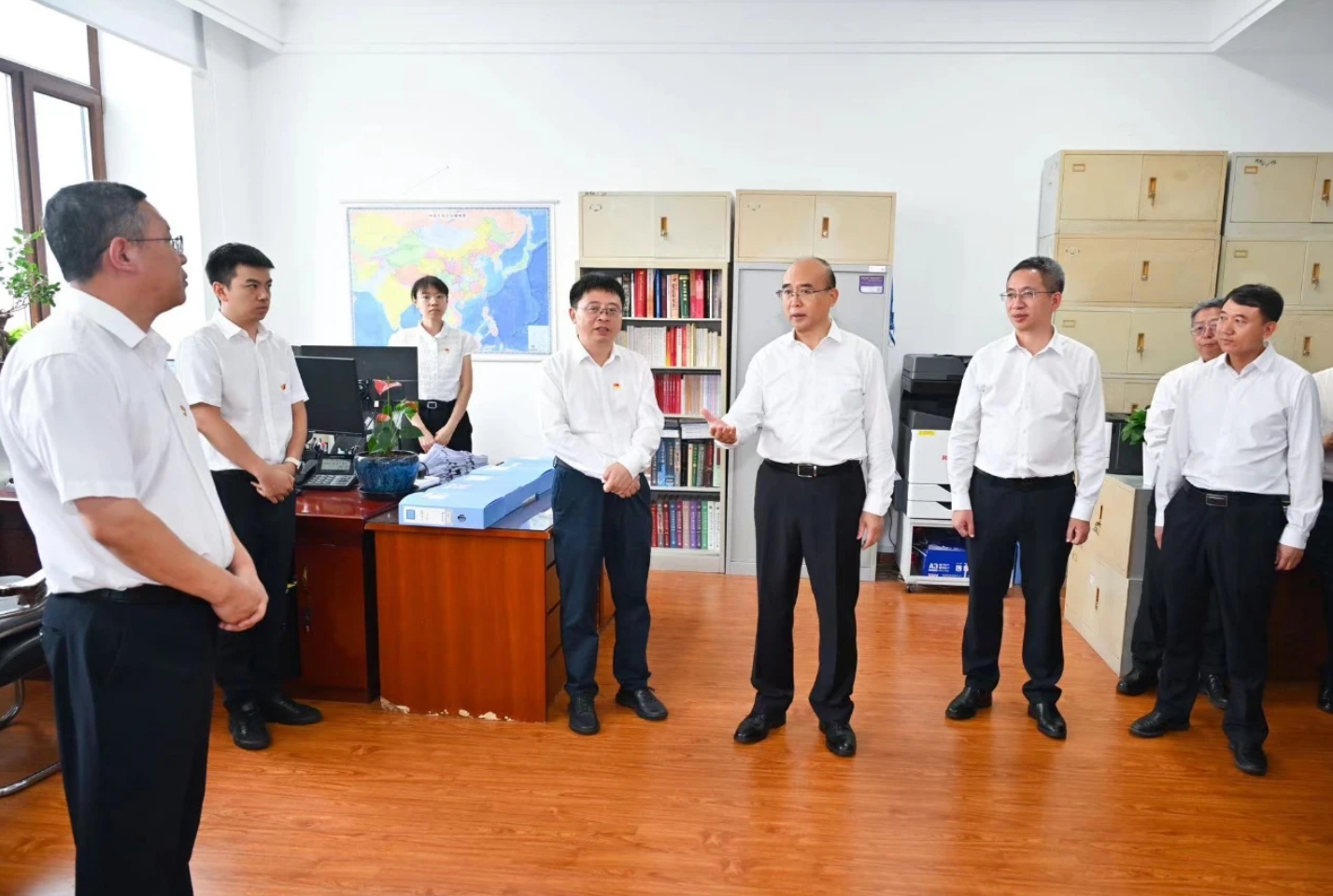 许勤来到省发改委牢靠资产投资处,与机关干部交流。