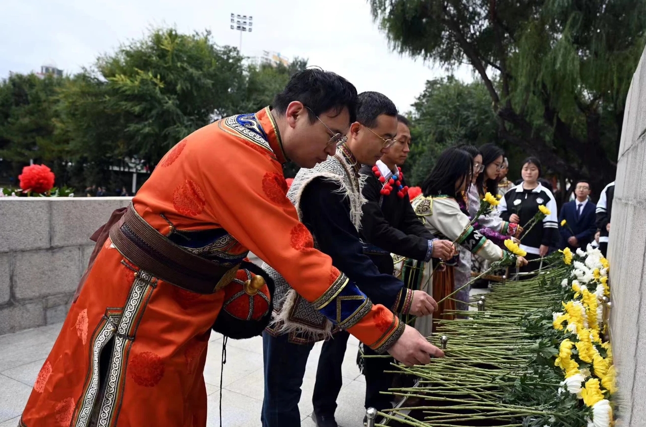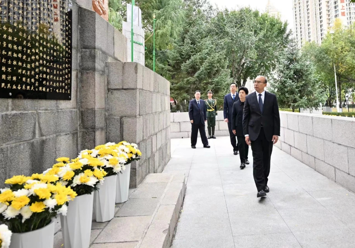 省及哈尔滨市各界代表向义士纪念塔敬献鲜花。